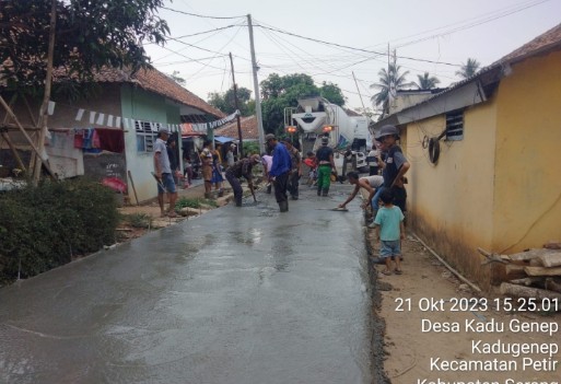 SERANG~PNews~Nampak jelas terlihat Antusiasme warga Kampung Bandung Desa Kubang Jaya Kecamatan Petir Kabupaten Serang dengan dibangunnya Jalan di kampung halaman mereka, Sabtu 21/10/2023.