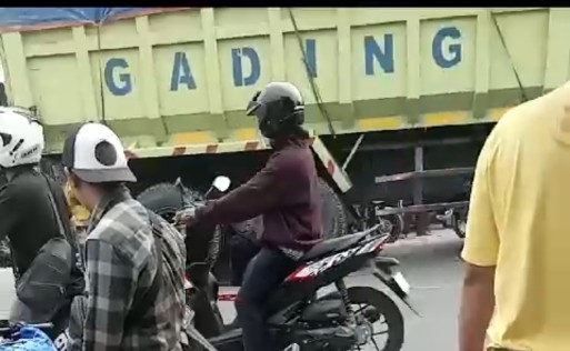 Dari video yang diterima Media ini, terlihat sopir Truk Tanah berwarna full hijau bertuliskan ” GADING ” tersebut sedang kebingungan diatas kemudi nya, mengetahui seorang wanita tergeletak dibawah roda Truknya.