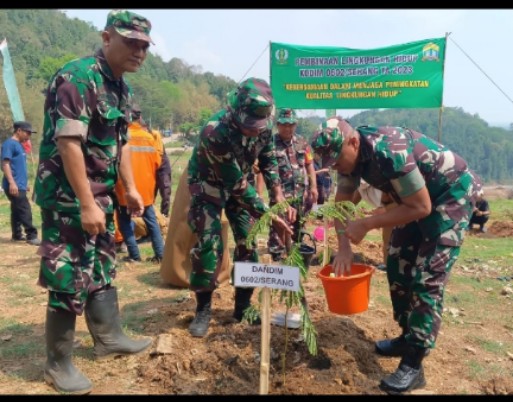 Hal ini disampaikan, Komandan Kodim (Dandim) 0602/Serang Letnan Kolonel (Letkol) Inf Mulyo Junaidi, S.E., M.Tr (Han), saat bersama Kapolresta Serang Kombes Pol Safwan Hermanto S.I.K., M.H dan Kadis Lingkungan Hidup Kota Serang Farach Richi, SSTP M.Si, melaksanakan penanaman pohon secara simbolis, bertempat di Kelurahan Cilowong Kota Serang Provinsi Banten, Selasa (21/11/2023).