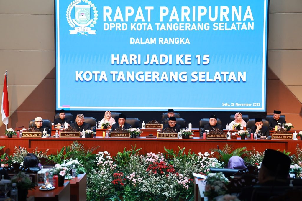 “Saya ucapkan Selamat Hari Ulang Tahun ke-15 Kota Tangsel. Dari sini mari kita tingkatkan kolaborasi dan kerja sama. Sehingga apa yang telah kita capai mampu kita optimalkan demi memberikan pelayanan yang optimal pada masyarakat,” ungkap Al Muktabar usai menghadiri Rapat Paripurna HUT ke-15 Kota Tangerang Selatan di Gedung DPRD Kota Tangerang Selatan, Jalan Raya Puspitek No.1, Setu, Kota Tangerang Selatan, Minggu (26/11/2023).