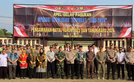 Polres Serang~PNews~Kapolres Serang AKBP Wiwin Setiawan memimpin apel gelar pasukan dalam rangka Operasi Lilin Maung 2023 di halaman Markas Polres Serang, Kamis (21/12/2023) sore.
