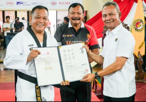 Sementara itu, Ketua Umum Pengurus Besar Taekwondo Indonesia, Letjen TNI Richard T H Tampubolon, mengungkapkan baru saja kita menyaksikan acara penyematan sabuk hitam DAN V Kehormatan Kukkiwon kepada Pangkostrad Letjen Muhammad Saleh Mustafa.