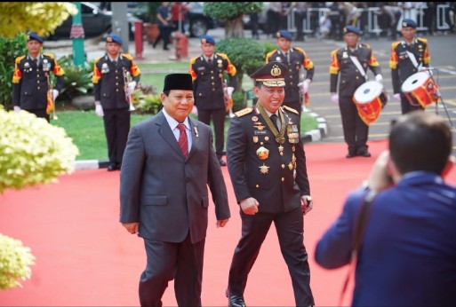 Mengenakan jas dan kopiah, Prabowo tiba di Mabes Polri sekitar pukul 14.00 WIB disambut Kapolri Jenderal Pol. Listyo Sigit Prabowo, Wakapolri Komjen Pol. Agus Andrianto dan para Pejabat Utama Mabes Polri lainnya.