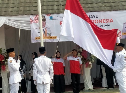 Hanapi S.Pdi, membacakan tek Proklamasi Kemerdekaan RI dengan semangat, adapun tek Undang undang Dasar 1945, dibacakan oleh Aji Samsiar, seolah mengingat kan kita semua yang hadir tentang sejarah perjuangan bangsa Indonesia meraih kemerdekaan.