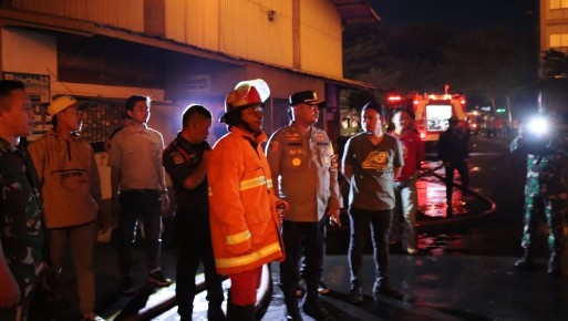 Di lokasi kejadian, Kapolres Condro Sasongko langsung berkordinasi dengan petugas pemadam kebakaran yang sedang berupaya memadamkan kobaran api.