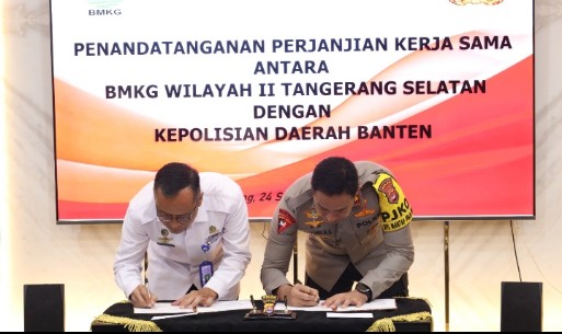 Serang~PNews~ BMKG melakukan Penandatangan Perjanjian Kerja Sama (PKS) dan MoU (Memorandum of Understanding) dengan Kepolisian Daerah Banten