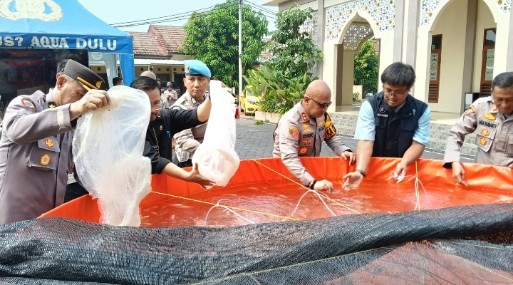 SERANG~PNews~ Dalam rangka mendukung program ketahanan pangan, Kepolisian Resor (Polres) beserta Polsek jajaran serentak melakukan penebaran 200 ribu benih ikan lele dan nila ke dalam biolflok di masing-masing polsek, Jumat 15 Nopember 2024.