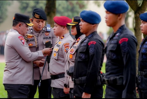 Pin Emas disematkan oleh Kapolda Sumut Irjen Whisnu Hermawan di lapangan KS. Tubun Mapolda Sumut, Senin(2/12/2024).