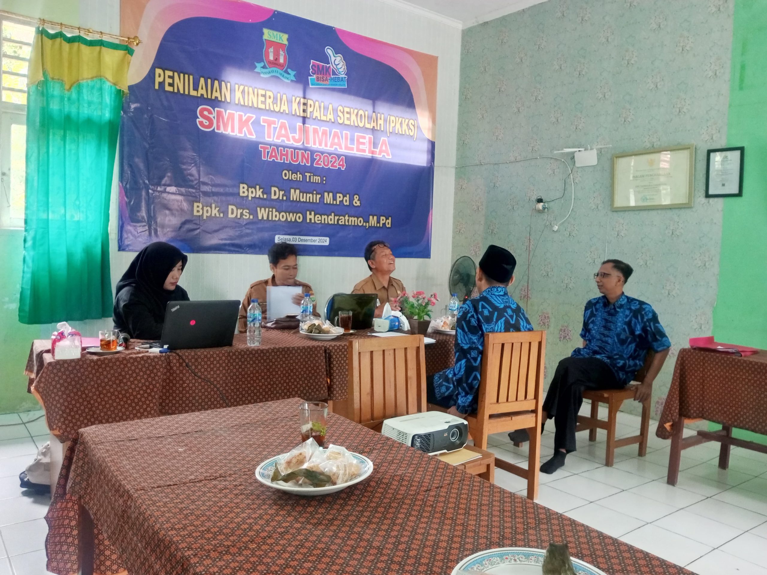 Penilaian kinerja Kepala Sekolah ( PKKS ) adalah kegiatan rutin tahunan yang dilakukan untuk menilai kinerja kepala sekolah dalam melaksanakan tugas pokoknya dilaksanakan di ruang serbaguna SMK Tajimalela.
