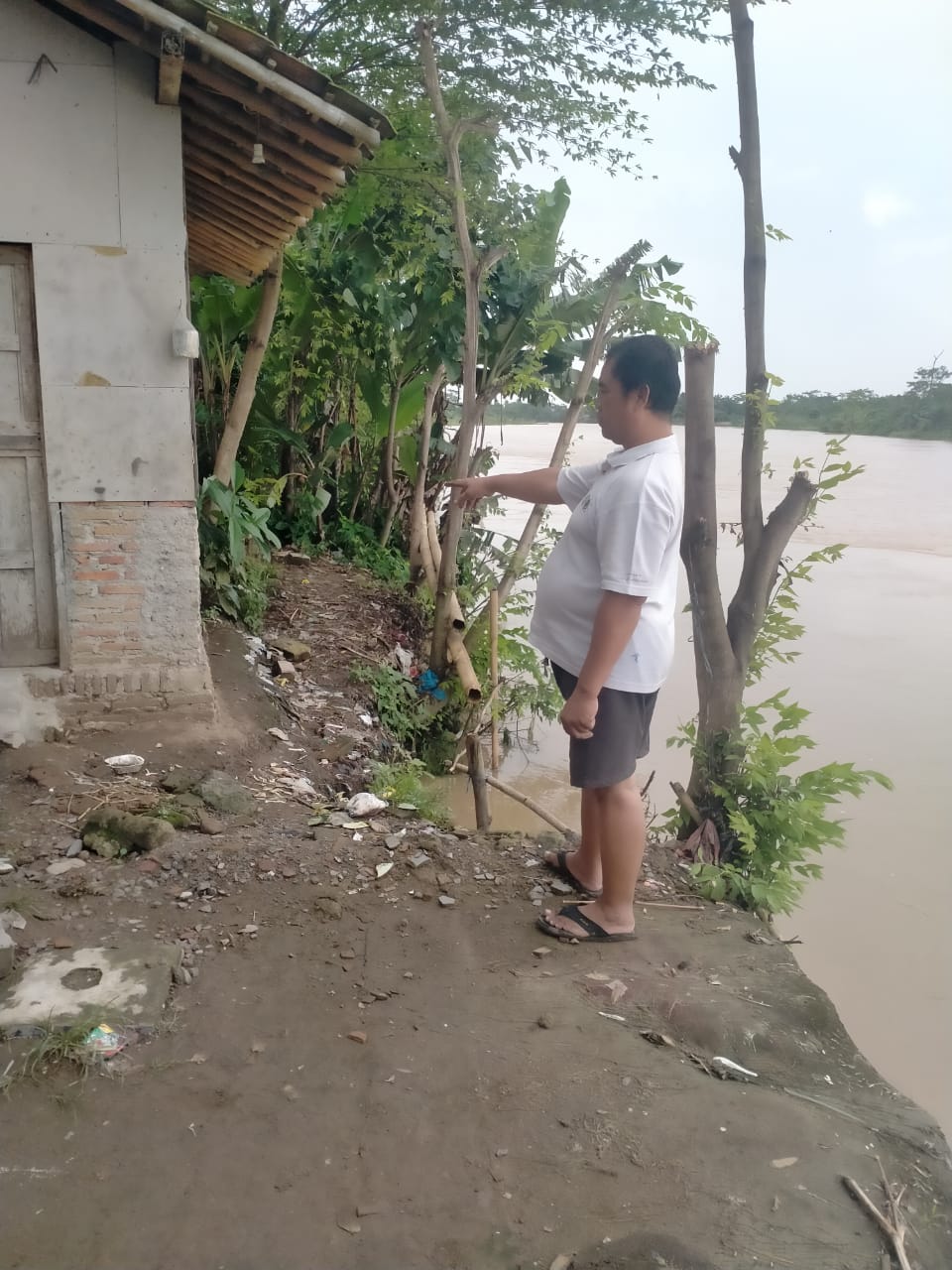 Rahmat salah seorang keluarga pemilik rumah, ketika di temui awak media mengatakan, dampak guyuran hujan terus menerus selama dua pekan mengakibatkan bibir sungai longsor dan beberapa rumah yang ada di pinggir sungai dikhawatirkan ikut terbawa longsor.