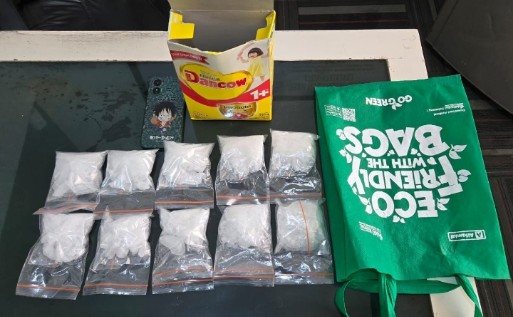 * 1 buah kotak bekas susu yang didalamnya terdapat 10 buah plastic klip bening yang berisikan narkotika jenis sabu dengan total berat berat + 815 gr.
