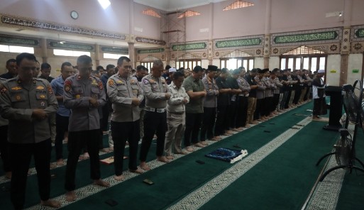 Serang -PNews- Sebagai bentuk penghormatan dan doa atas gugurnya tiga personel terbaik dalam menjalankan tugas sebaik-baiknya di Way Kanan, Lampung. Polda Banten dan jajaran melaksanakan Salat Ghaib untuk mendoakan para almarhum bertempat di masjid Baiturrahman Polda Banten pada Selasa (18/03).