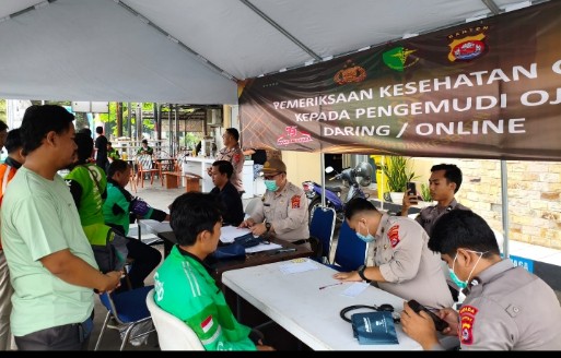 Serang -PNews- Dalam rangka menyambut Hari Ulang Tahun (HUT) Bhayangkara ke-79, Biddokkes Polda Banten bersama Polres jajaran melaksanakan Bakti Kesehatan sebagai wujud kepedulian Polri terhadap masyarakat, khususnya para pekerja sektor informal seperti pengemudi ojek daring.