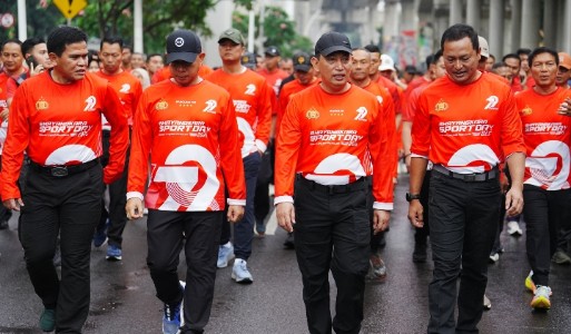 JAKARTA -PNews- Kapolri Jenderal Listyo Sigit Prabowo menghadiri kegiatan Bhayangkara Sport Day di Lapangan Bhayangkara Polri, Jakarta Selatan, Sabtu (21/6/2025). Acara ini di antaranya dihadiri oleh Panglima TNI Jenderal Agus Subiyanto dan Jaksa Agung ST Burhanuddin.