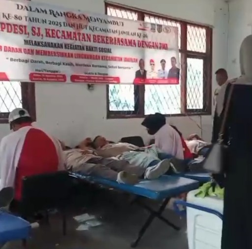 SERANG -PNews- Sebagai salah satu wujud cinta tanah air dan peduli terhadap sesama, Awak Media Jawilan (AMJ), bekerja sama dengan Sekurity Jawilan(SJ), Palang Merah Indonesia (PMI)kabupaten Serang, Melakukan Kegiatan Donor Darah. Acara berlangsung pada Rabu, 13 Agustus 2025 bertempat di Aula Paten di Kantor kecamatan Jawilan Kabupaten Serang, Kegiatan donor darah ini merupakan salah satu dari rangkaian memeriahkan HUT Republik Indonesia ke-80 serta memperingati hari jadi Kecamatan Jawilan.