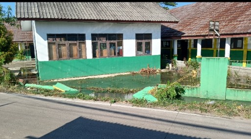 “Pagar Sekolah roboh akibat guyuran hujan dan terendam air Terus menerus”.