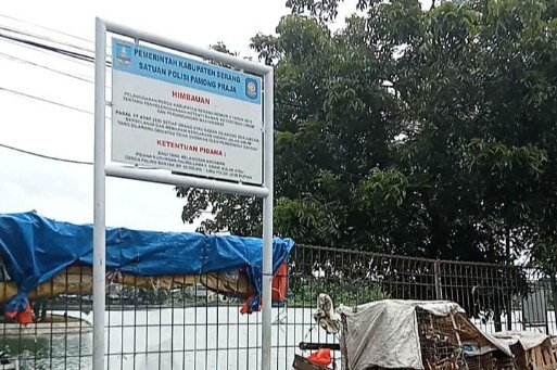 SERANG PNews– Meski Satpol PP Kabupaten Serang sudah memasang Papan Larangan berjualan di sepanjang jalan di dekat situ Ciherang, Desa Cikande, Kecamatan Cikande, Kabupaten Serang, namun Pedagang membandel bahkan tak menghiraukan papan larangan.