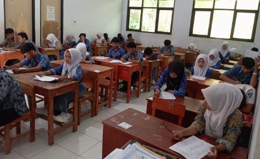 Dilaksanakan secara luar jaringan (luring) di ruang kelas sekolah dengan pengawasan dari guru pengawas.