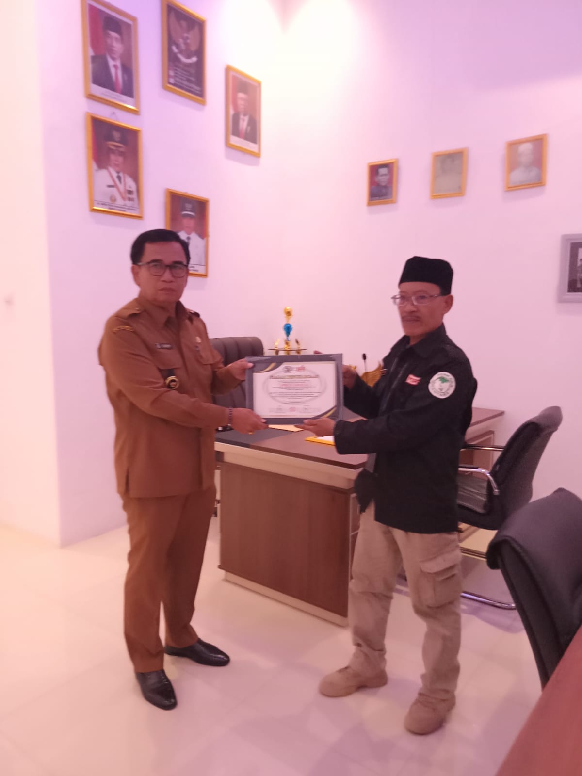 Jelang peringati HPN 2024, Awak Media Jawilan Berikan Piagam kepada Ketua APDESI Kecamatan Jawilan