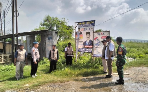 Anggota Polsek Jawilan Dampingi Panwascam Dalam Penertiban Alat Peraga Kampanye Pemilu 2024