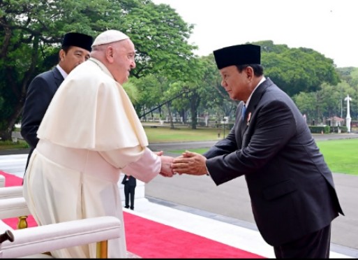 Menhan Prabowo Dampingi Presiden Joko Widodo dalam Kunjungan Paus Fransiskus di Istana Merdeka