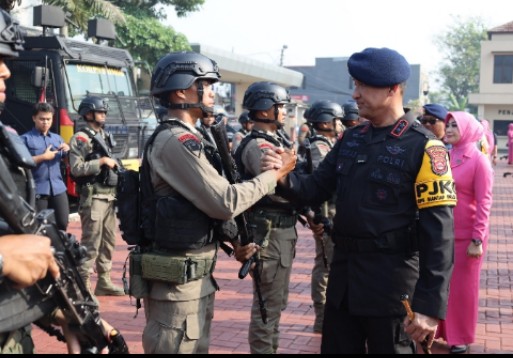 Kapolda Banten Lepas 100 Personel Satbrimob Polda Banten Yang Tergabung Dalam Satgas Amole